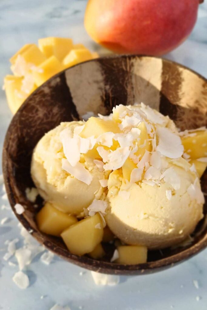 This is one of my favorite combinations for the Ninja Creami. Mango and coconut work naturally well together and create a creamy ice cream with minimal effort.
