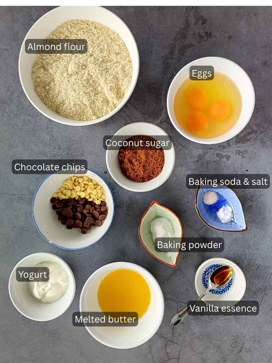 Ingredients for Almond Flour Chocolate Chip Muffins